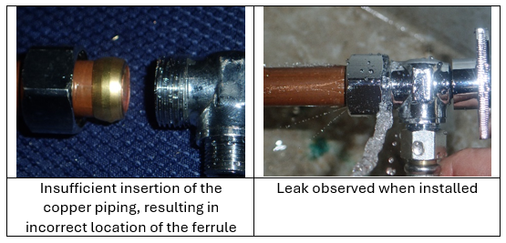 - Insufficient insertion of the pipe into the connection, and subsequently the incorrect location of the ferrule, which will result in the tubing slipping out of the fitting.