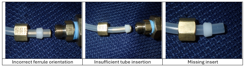 - Incorrectly orienting the ferrule. The tapered end of the ferrule should point toward the end of the tubing.